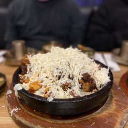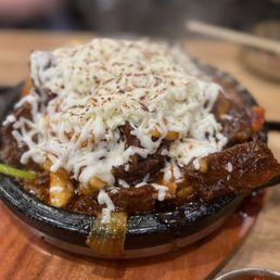 Came by on a weekday an hour before closing and there was still a wait, that's how you know it's good. They took our order outside and once we got in(10 min wait), it was game time. We got the Kalbu Jjim with cheese, and it was really tasty.